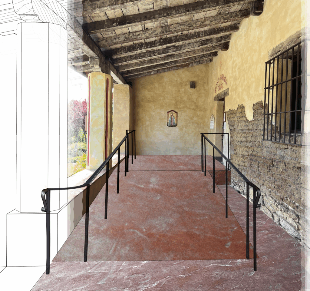 We have done much preliminary work to identify the necessary improvements to the Chapel. As the structure of the building itself needs restoration and seismic retrofit, we are in the process of understanding the parameters of such a project to ensure the work we do now is in line with that larger effort. We have already done much to improve the Chapel and Sacristy environments by addressing humidity, plumbing, lighting, storage, and plaster issues. We have engaged a landscape architect, contractor, and surveyor to develop options for improving building accessibility by providing better access for those with limited mobility.
