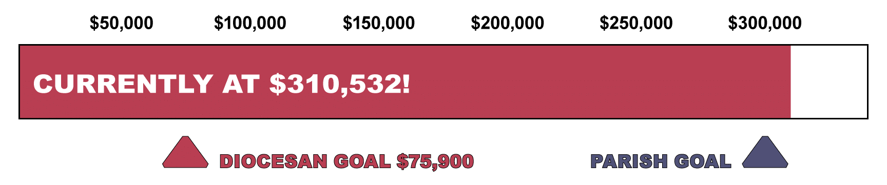 We recently received a generous contribution of $20,000.00. Our AMA total to date is $321,102.00 (including our $70,000.00 donation to the Diocesan ministries). Though we promote our annual campaign fundraising in the early to late spring, we continue to receive donations until the end of the year. Our goal is to improve the ventilation, heating, and security of our beautiful Blessed Sacrament Chapel to make it more accessible, comfortable, and secure.