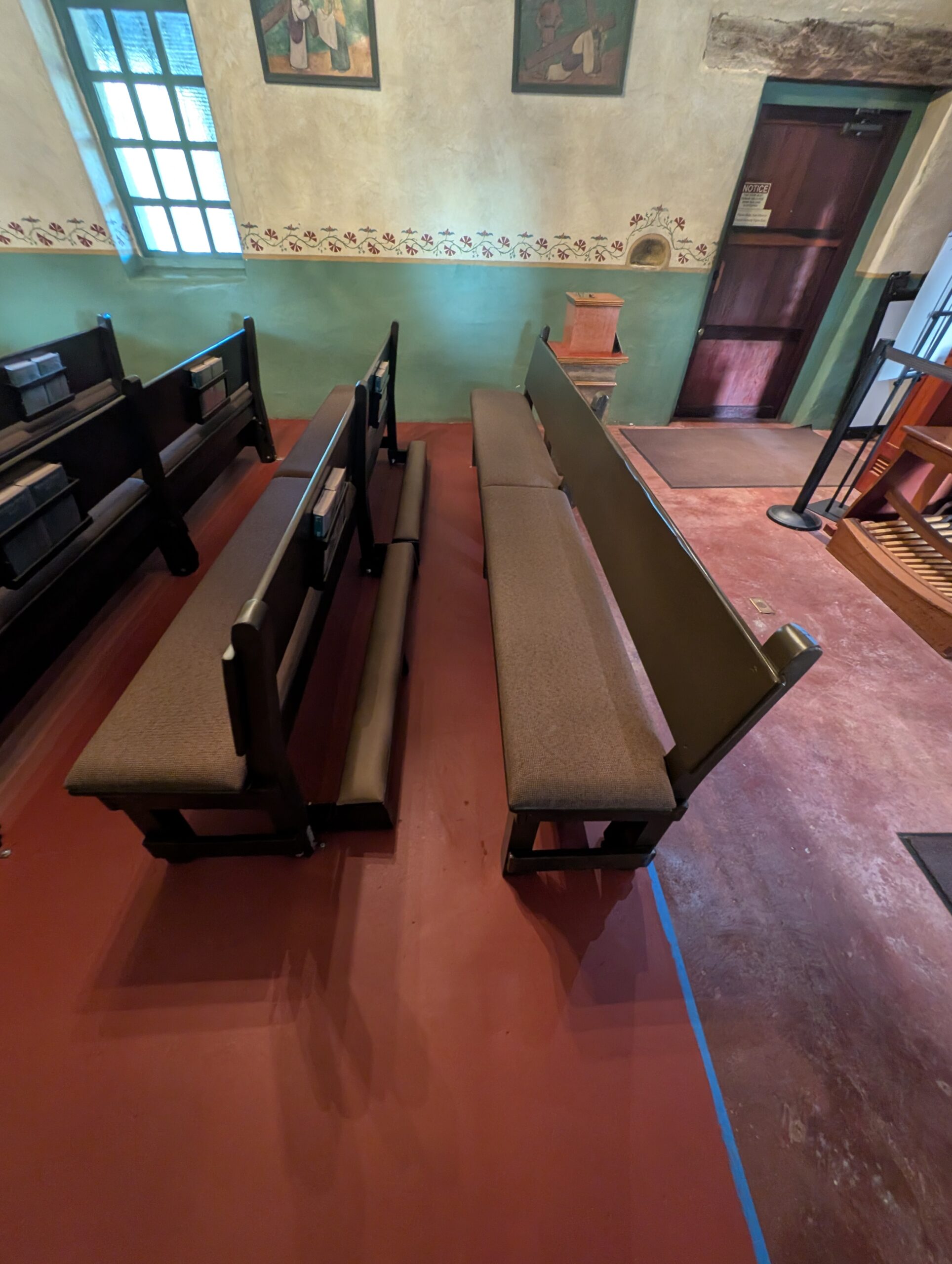 We are happy to share that the pews in our Blessed Sacrament Chapel have returned, restored, and newly upholstered by the same craftsmen who beautifully restored the Basilica pews. The chapel floor has also been freshly painted.